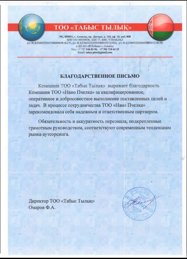 и работаем официально. Договор на ТОО или ИП |