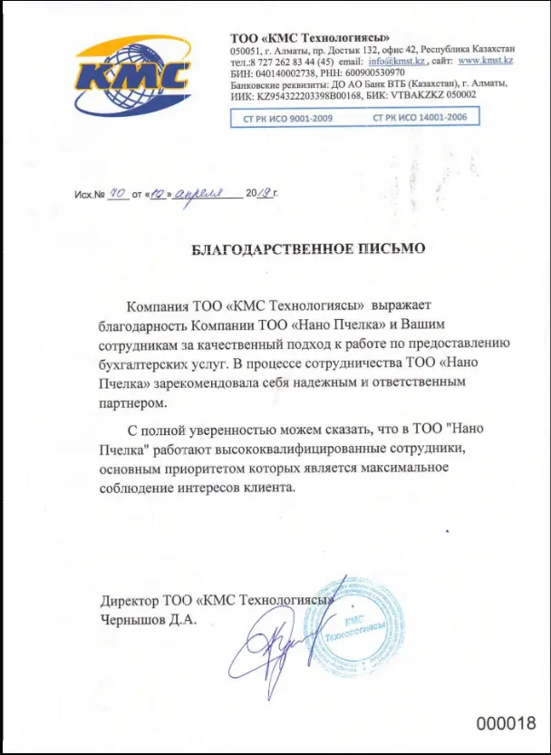 Безлимитное количество обращений по вопросам бухгалтерии и финансов в течении рабочего дня. Присылаем на фирму нашего представителя (в пределах Алматы) или работаем удалённо с любой точкой Казахстана.